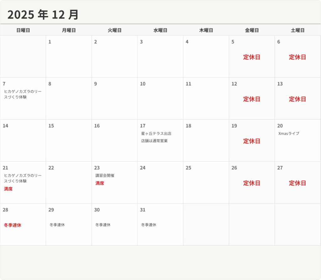 - 定休日:金・土(通常営業は休み)土曜=宿泊/イベント/貸切等:要相談で対応可